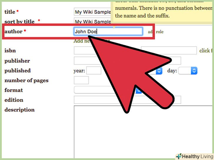 Опустіться вниз і введіть ім'я автора.- Якщо авторів декілька, то під текстовим полем введіть додаткових авторів.