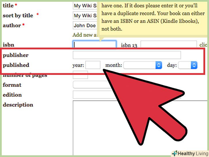 Потім вкажіть видавця, місце видання, Рік видання.Всю цю інформацію можна знайти на сторінці видавця книги.
