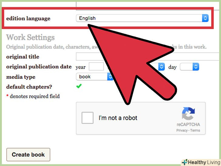 Прокрутіть сторінку трохи вниз і знайдіть випадаюче меню вибору мови, на якому написана ваша книга.початковою мовою встановлено англійську.