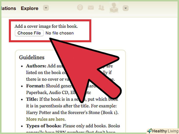 Поверніться до початку. знайдіть функцію завантаження зображення обкладинки книги.