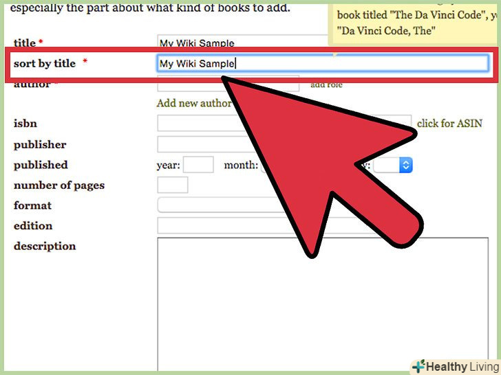 Прокрутіть список, поки не знайдете поле "Сортувати за назвою".введіть знову назву книги, як якщо б ви шукали через каталог по-старому.- Кінга з назвою» Новий Світ «буде занесена, як»новий світ, а".