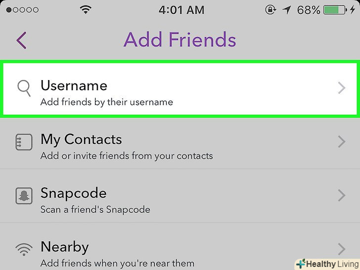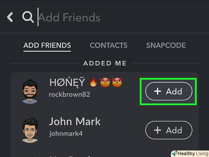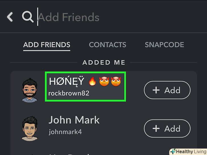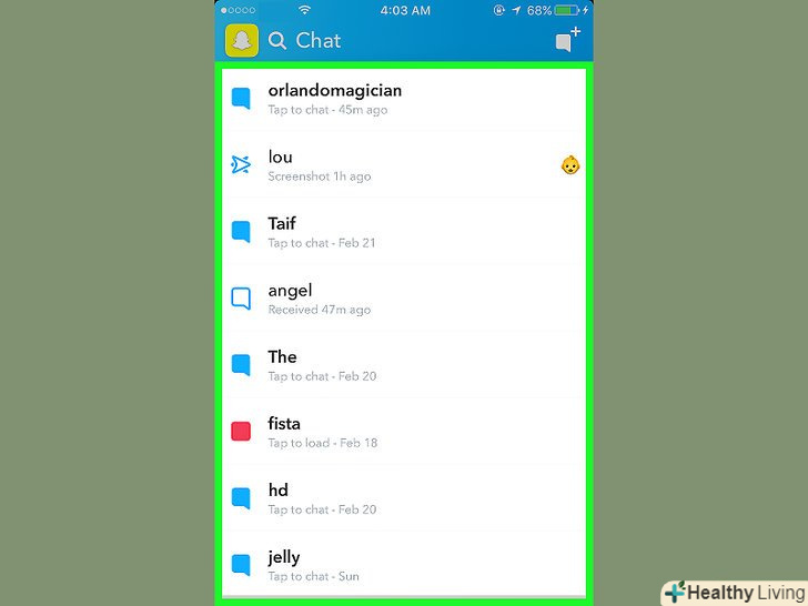 Знайдіть свого друга в списку контактів.якщо його імені немає в списку, значить, він вас заблокував.[2] поки він вас не розблокує, відправляти йому знімки буде не можна.- Щоб знайти друга, натисніть на іконку