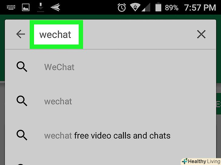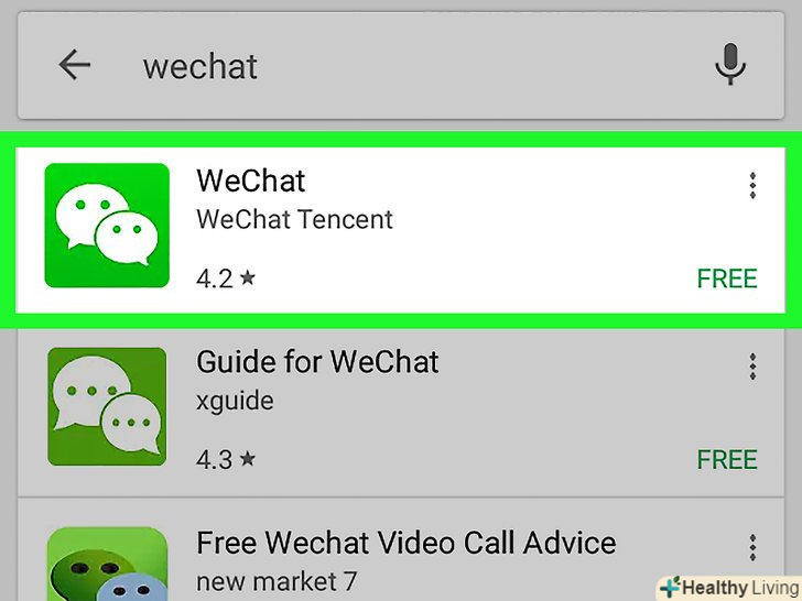 Введіть wechat в рядку пошуку. ви знайдете її у верхній частині екрана. У міру введення під рядком будуть відображатися результати пошуку.