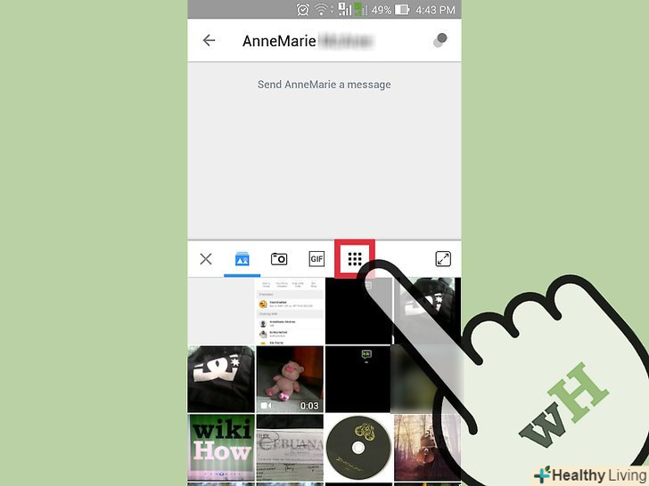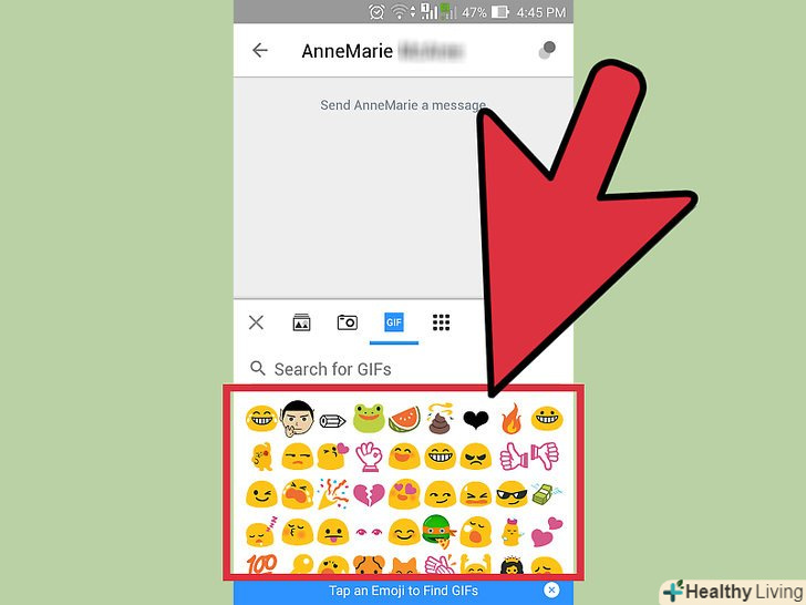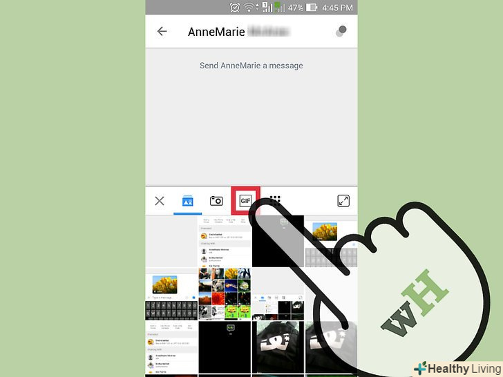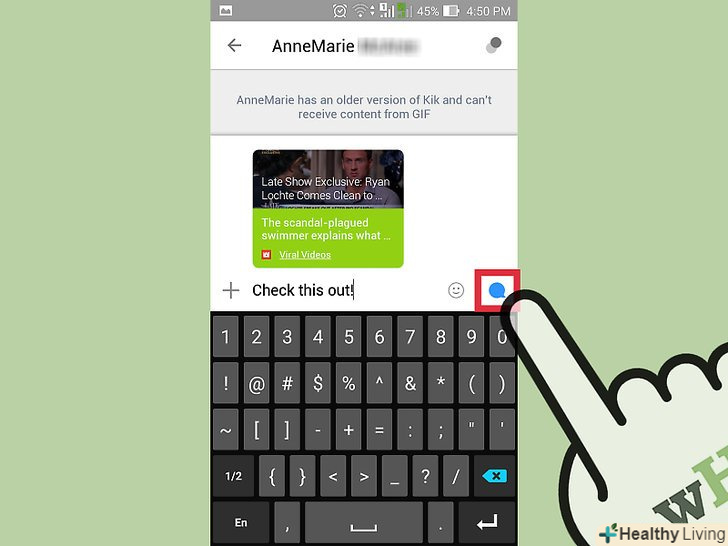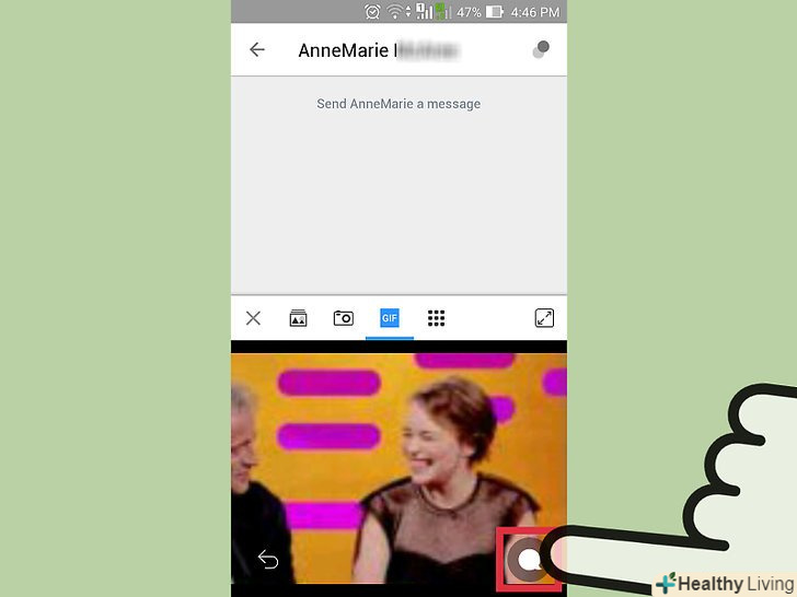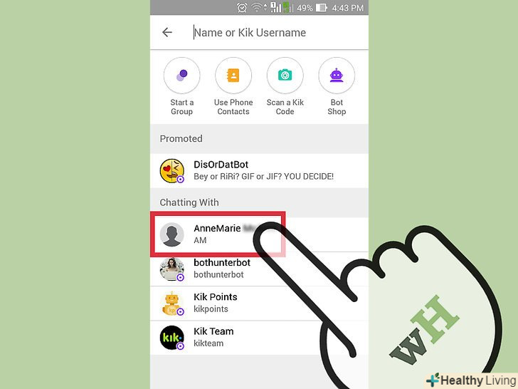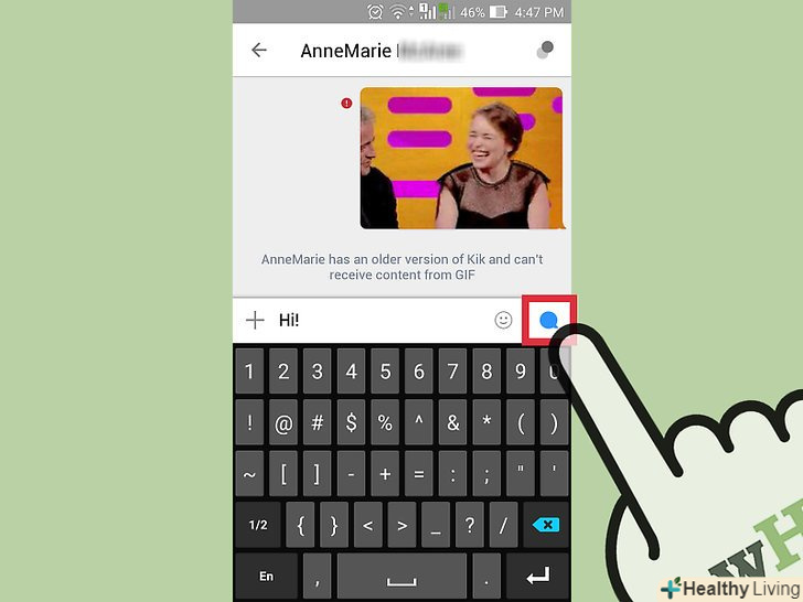 Запустіть програму «Kik», а потім натисніть на ім'я чату на головному екрані. у додатку є велика галерея гіфок (беззвучні, повторювані і, як правило, розважальні міні-відео), які можна відправити друзям. [2]