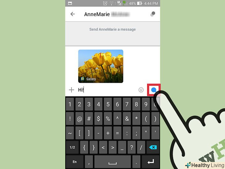Натисніть на синю кнопку чату, щоб відправити файл. Фото або відео (і супроводжуваний їх текст, якщо ви його надрукували) будуть відправлені контакту, з яким ви листувалися.