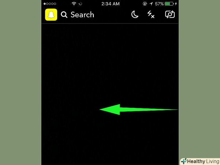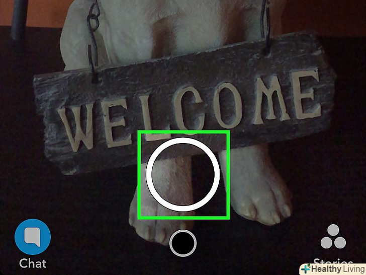 Запустіть < span class="nowrap" title="This is not a clickable button; it illustrates the button one should find." style="font-family: Segoe UI, Frutiger, Frutiger Linotype, Dejavu Sans, Helvetica Neue, Arial, sans-serif;letter-spacing:0px;padding:0em .6em; border:1px solid; border-color:#AAA #555 #555 #AAA; -moz-border-radius: 0px; -webkit-border-radius: 0px; border-radius: 0px; background-color: #F2F2F2; background-image: -moz-linear-gradient(top, #FCFCFC, #E0E0E0); background-image: -o-linear-gradient(top, #FCFCFC, #E0E0E0); background-image: -webkit-linear-gradient(top, #FCFCFC, #E0E0E0); background-image: linear-gradient(top, #FCFCFC, #E0E0E0);">Snapchat. натисніть на значок у вигляді білого примари на жовтому тлі. Він знаходиться на одному з робочих столів або на панелі додатків. Відкриється екран з включеною камерою.