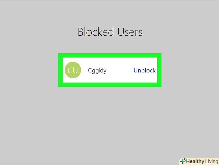 Знайдіть користувача, якого хочете розблокувати. якщо ви заблокували декількох користувачів, знайдіть того, якого хочете розблокувати.