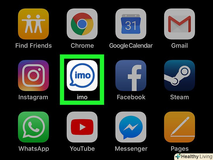 Запустіть додаток imo. натисніть на білий значок з мовним хмарою з буквами «imo».- Якщо ви ще не авторизувалися в imo на своєму телефоні, введіть номер телефону та ім'я.