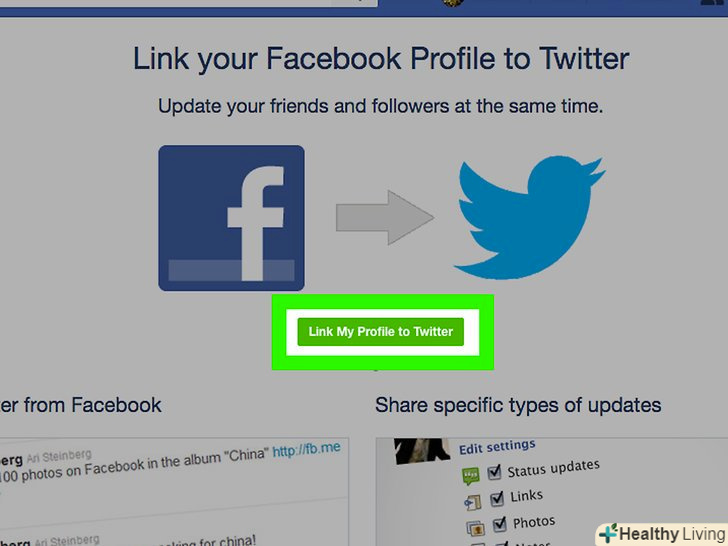 - Також можна зв'язати свій обліковий запис Twitter з аккаунтом Facebook , щоб ваші твіти з'являлися на Facebook.