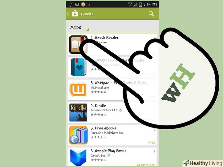 Купити книгу можна на сайті Amazon, Nook або Google Книги. Це сайти, яким можна довіряти. Тут ви знайдете майже будь-яку книгу в будь-якому форматі - для комп'ютера, планшета, смартфона або іншого пристрою. На таких сайтах можна не боятися вірусів.- Якщо ви використовуєте комп'ютер, ви можете завантажити безкоштовну програму для читання електронних книг. Якщо ви завантажите книгу у форматі PDF, її можна буде прочитати в програмі Adobe Acrobat Reader. Формат Epub і Lit можна відкрити в програмі Microsoft Reader.