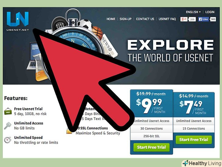 Купуйте послуги сервісу Usenet. Usenet-це дошка оголошень. Це мережа, яка працює на безпечному сервері для безпечного високошвидкісного чату. Але тепер Usenet використовується для обміну файлами. Щоб користуватися послугою, необхідно придбати підписку. Також ви зможете користуватися різними інструментами пошуку, автоматичною конвертацією завантажених NZB файлів у формати електронних книг.[6]