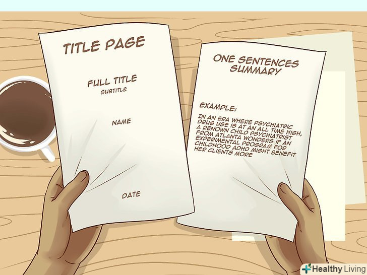 Почніть свою заявку з титульної сторінки і короткого викладу суті книги в одній фразі.найчастіше до заявок є вимога про наявність титульної сторінки. Дізнайтеся, яка інформація повинна бути вказана у вашому випадку. Зазвичай Титульна сторінка включає в себе всю ключову інформацію про автора (ім'я, адреса, контактні дані). Потім вам потрібно буде сформулювати суть книги в одному реченні.[3]- Зведення книги до однієї фрази може бути складним завданням, і у вас може піти кілька днів на вибір правильних слів. Не бійтеся звернутися до друзів за допомогою. Можна написати кілька пропозицій і попросити друзів вибрати ті, які викликають у них максимальний інтерес до книги.