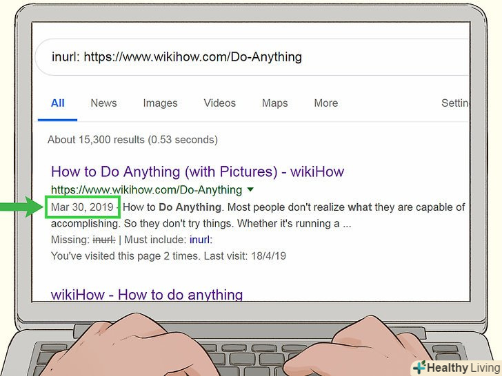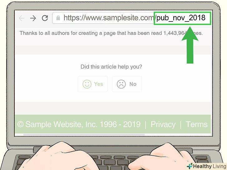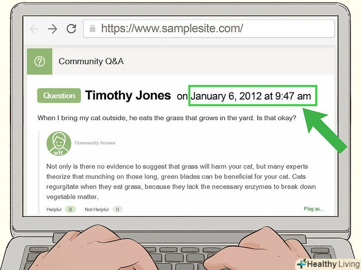 Цитування сайту в науковій роботі або есе часом викликає багато проблем і питань, але є ряд перевірених методів, які дозволять вам знайти дату публікації. Щоб дізнатися, коли стаття або сторінка була опублікована, знайдіть дату на сайті або в його URL. Крім того, дату можна дізнатися, виконавши пошук в Google з використанням спеціального оператора URL. Якщо вам потрібно знати, коли був опублікований сам сайт, вивчіть вихідний код сайту. Хоча дату публікації можна знайти для більшості сайтів, це не завжди так. У такому випадку вкажіть сайт без дати.