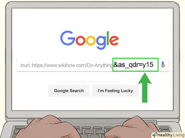 Додайте " amp;as_qdr=y15» після URL-адреси і знову запустіть пошук.поставте курсор відразу після URL-адреси, яку ви тільки що шукали. Потім введіть " amp;as_qdr=y15» (без лапок). Запустіть пошук ще раз, щоб перейти до остаточного списку результатів.[7]- Цей набір символів є другою частиною оператора " inurl:".