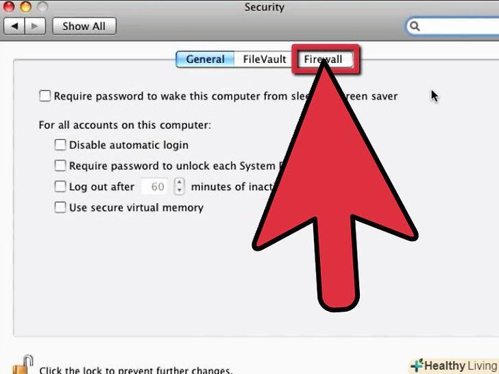 Налаштуйте брандмауер.таким чином ви відкриєте доступ до вашого FTP сервера, якщо фаєрвол включений.- Клікніть на вкладку " Firewall "і переконайтеся, що віконце показує" Firewall On."Якщо фаєрвол вимкнений, то натисніть на кнопку "Start".