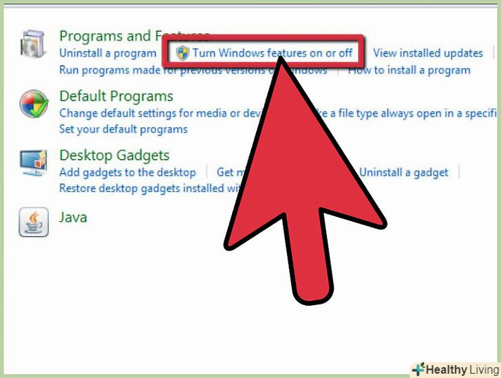 - Натисніть на "включити функції Windows on або off", під категорією " програми та функції."З'явиться нове віконце з додатковими опціями Windows.
