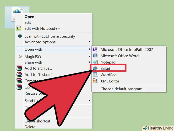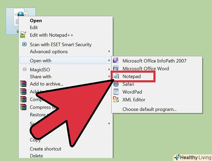 Відкрийте XML-файл у встановленій програмі.багато програм автоматично асоціюються з XML-файлами, що дозволяє відкривати такі файли, двічі клацнувши по них. Якщо це не спрацювало, клацніть правою кнопкою миші на XML-файлі та виберіть "Відкрити за допомогою". У списку виберіть встановлену програму.