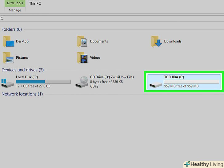Двічі клацніть по імені флешки. воно знаходиться в розділі "Пристрої та диски" посередині вікна.- Якщо флешка відкрилася, коли ви підключили її до комп'ютера, пропустіть цей крок.