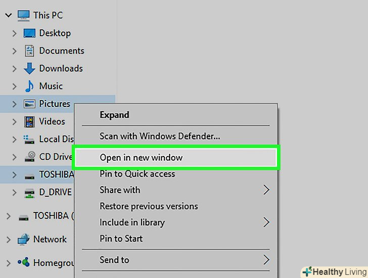 Натисніть < span class="nowrap" title="This is not a clickable button; it illustrates the button one should find." style="font-family: Segoe UI, Frutiger, Frutiger Linotype, Dejavu Sans, Helvetica Neue, Arial, sans-serif;letter-spacing:0px;padding:0em .6em; border:1px solid; border-color:#AAA #555 #555 #AAA; -moz-border-radius: 0px; -webkit-border-radius: 0px; border-radius: 0px; background-color: #F2F2F2; background-image: -moz-linear-gradient(top, #FCFCFC, #E0E0E0); background-image: -o-linear-gradient(top, #FCFCFC, #E0E0E0); background-image: - webkit-linear-gradient(top, # FCFCFC, #E0E0E0); background-image: linear-gradient(top, #FCFCFC, #E0E0E0);">відкрити в новому вікні.відкриється друге вікно з вмістом папки "зображення", в якій за замовчуванням зберігаються зображення (фотографії, картинки і так далі).- Якщо флешка відкрилася, коли ви підключили її до комп'ютера, пропустіть цей крок.