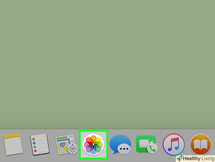 Відкрийте програму "Фото".її значок виглядає як різнобарвна ромашка і знаходиться в доці.