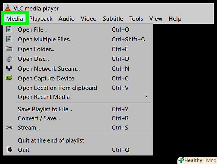 Відкрийте менюМедіа. воно знаходиться у верхньому лівому кутку вікна VLC.