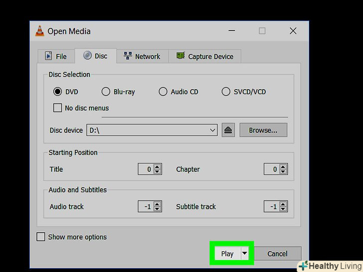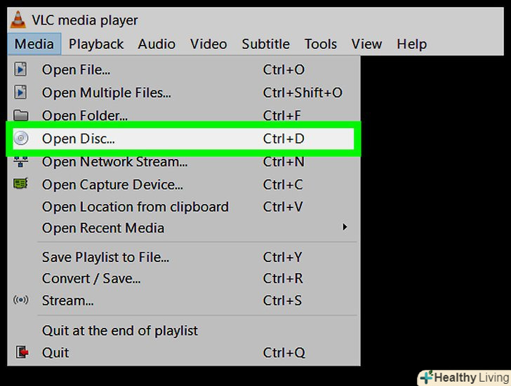 НатиснітьВідкрити диск.ця опція знаходиться у верхній частині меню "медіа". Відкриється вікно з рядом опцій.
