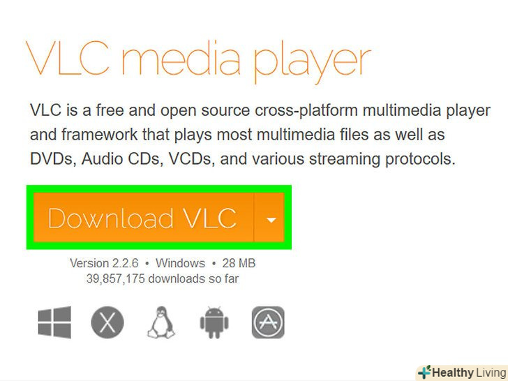 Перейти на сторінку завантаження VLC у веб-браузері. її адреса: http://www.videolan.org/vlc / .