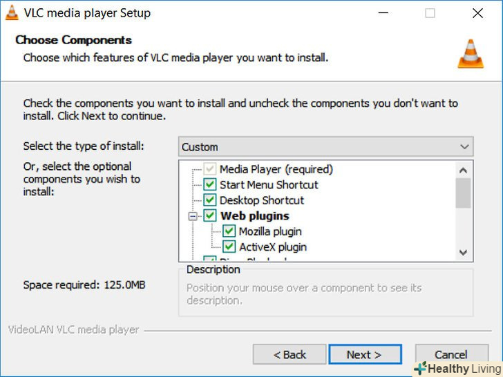 НатиснітьДалі На кожній наступній сторінці.медіаплеєр VLC буде встановлений з оптимальними настройками.