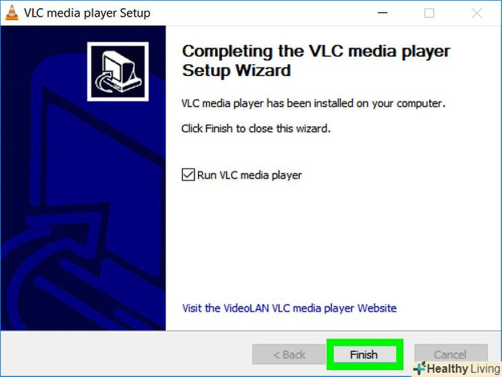 НатиснітьЗавершити, коли з'явиться запит. вікно установника закриється. Тепер медіаплеєр VLC встановлений на комп'ютері.