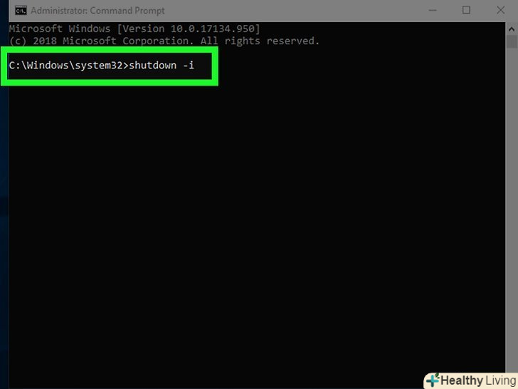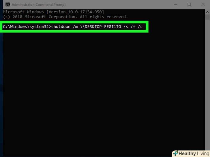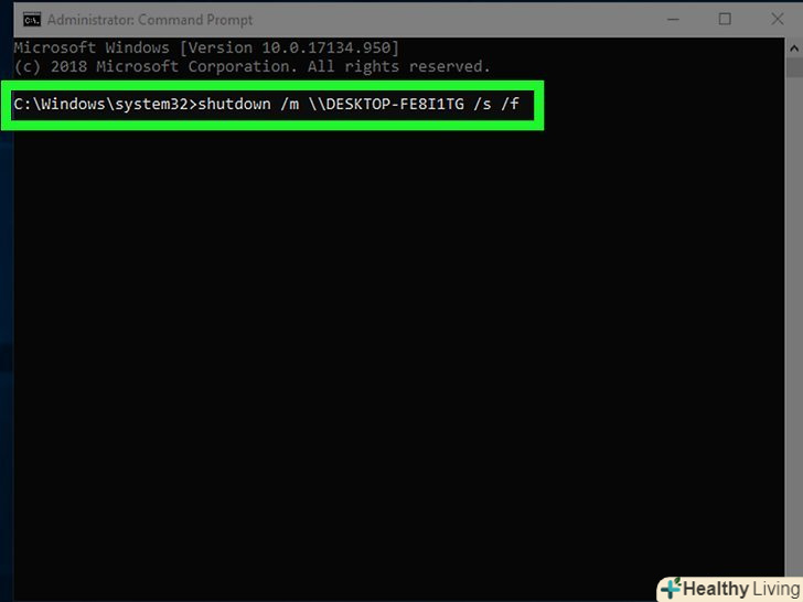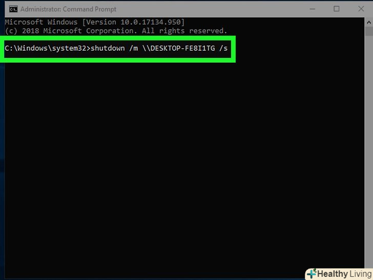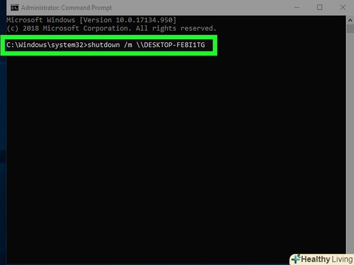Введітьm \\ім'я_комп'ютера.додайте цей текст через один пробіл після команди "shutdown" в тому ж рядку. Замініть "імя_комп'ютера" фактичним ім'ям цільового комп'ютера.