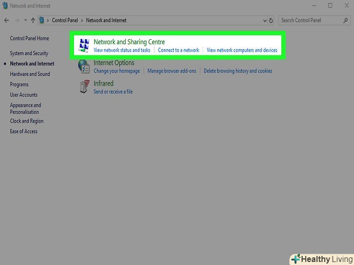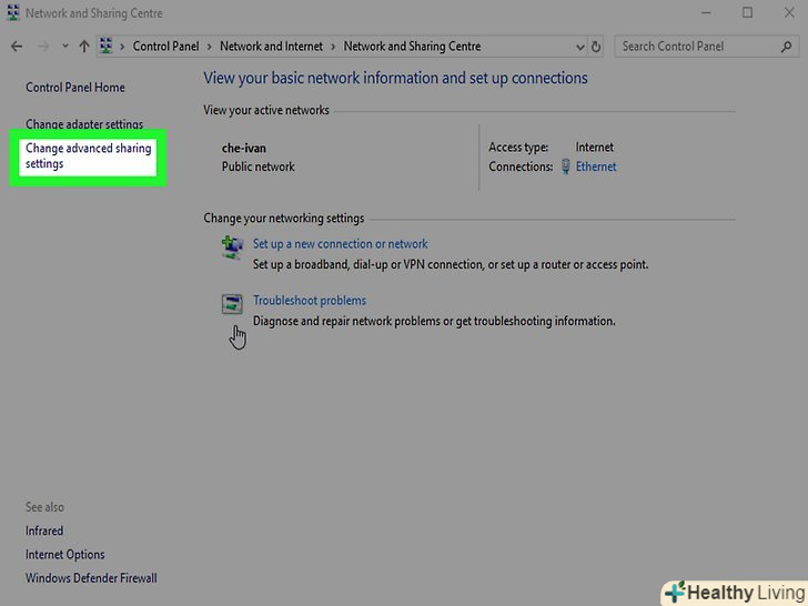 Натисніть наЦентр управління мережами і загальним доступом поруч з іконкою, на якій зображені чотири підключених комп'ютера.