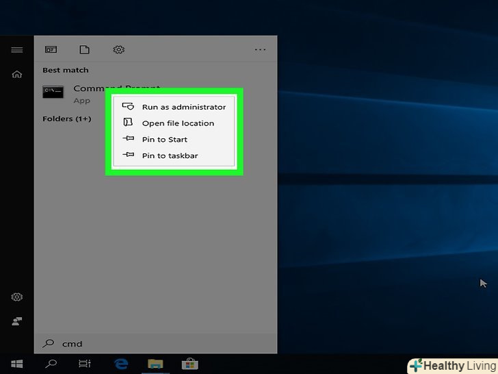 Клацніть правою кнопкою миші поКомандний рядок.її іконка виглядає як чорний екран з білим написом. Якщо клацнути по цій іконці правою кнопкою миші, праворуч від неї з'явиться контекстне меню.