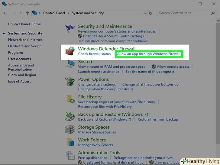 Натисніть наДозвіл запуску програми через брандмауер Windows.це друга опція під розділом "Брандмауер Windows".