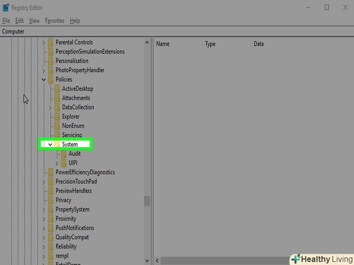 Перейдіть в папку "System «в розділі»Policies". використовуйте папки в лівій бічній панелі для навігації в редакторі реєстру. Для переходу до папки "System" в розділі «Policies» виконайте наступні дії:- Двічі клацніть по папціHKEY_LOCAL_MACHINE.