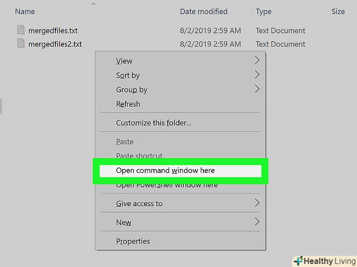 Натисніть↵ Enter, щоб запустити команду. буде створено новий текстовий файл з вмістом всіх текстових файлів, які знаходяться в поточній папці.[1]- Переконайтеся, що новий файл містить вміст усіх текстових файлів, а потім видаліть їх (якщо вони не потрібні).