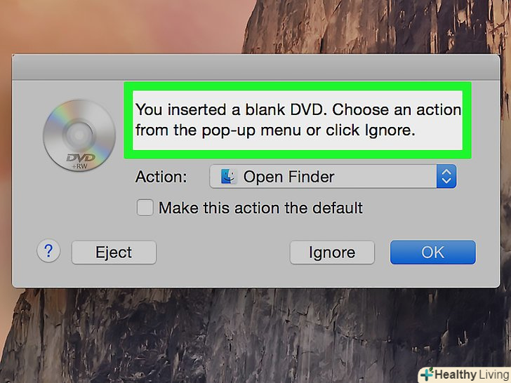 Вставте порожній диск в оптичний привід.щоб створити інсталяційний диск з операційною системою або грою, скористайтеся новим DVD-диском, на який нічого не записували.