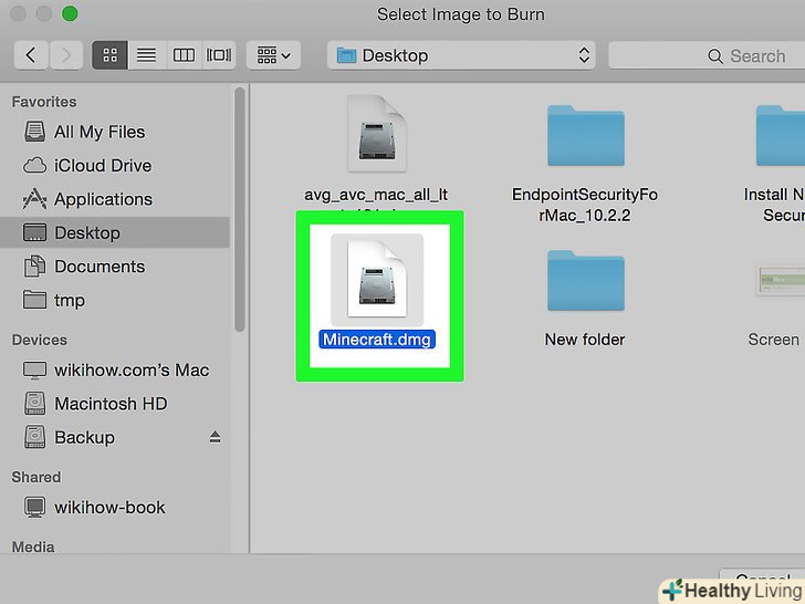 Виділіть ISO-файл.відкрийте папку з ISO-файлом (наприклад, папку "робочий стіл") у лівій частині вікна Finder, а потім клацніть по ISO-файлу, щоб вибрати його.