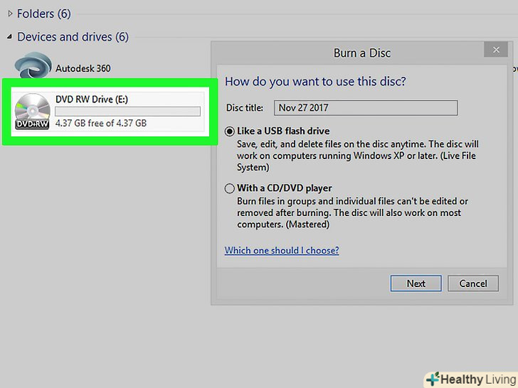 Клацніть поЗаписати диск.ця опція знаходиться на панелі інструментів. Відкриється спливаюче вікно.