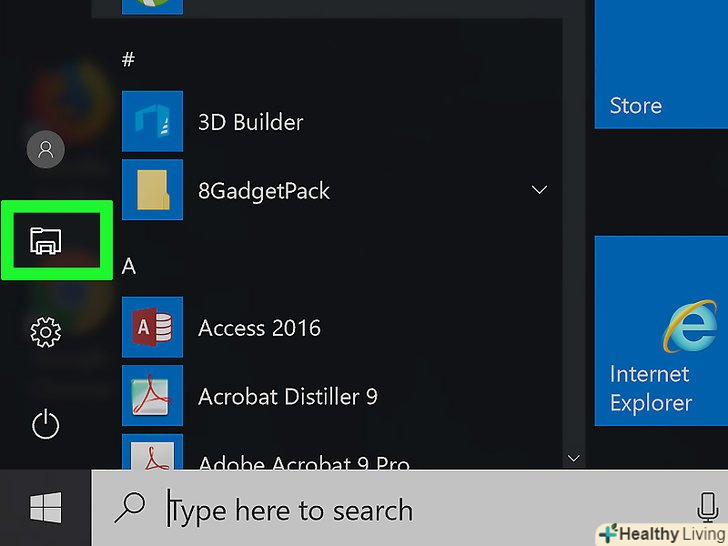 Відкрийте вікно Провідника.для цього клацніть по значку у вигляді папки в нижній лівій частині вікна»Пуск".