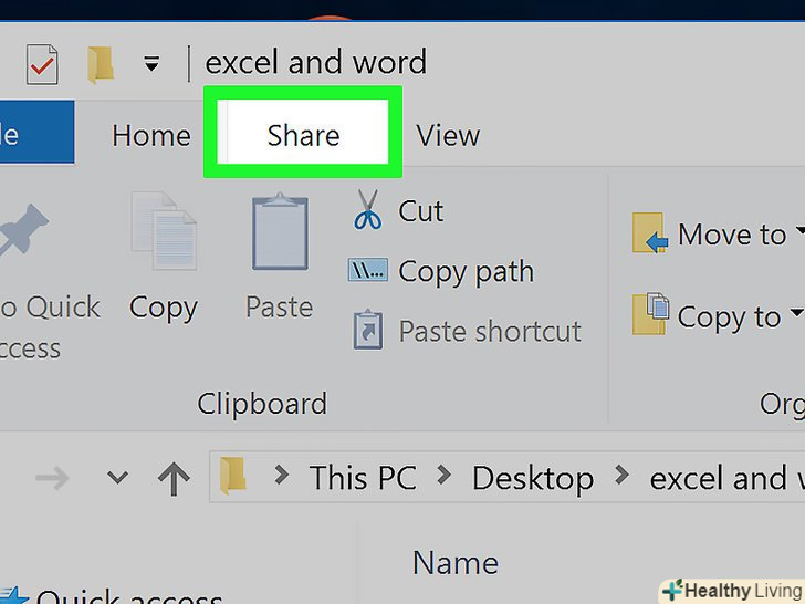 Клацніть поПоділитися.ця вкладка знаходиться у верхній лівій частині вікна Провідника. У верхній частині вікна Провідника відкриється панель інструментів.