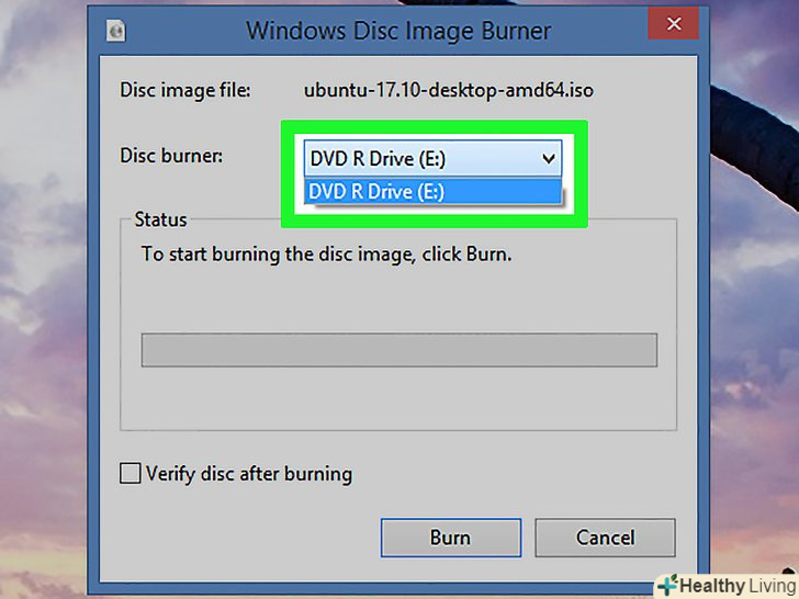 Переконайтеся, що в якості записуючого пристрою обраний DVD-привід.якщо на комп'ютері встановлено кілька оптичних приводів, відкрийте меню, що випадає «оптичний привід «і виберіть опцію»DVD".
