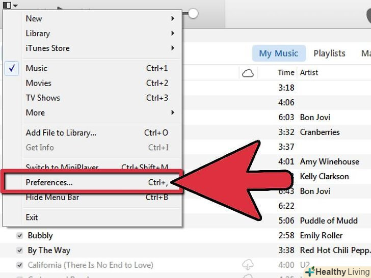 Відкрийте головне спадаючі меню iTunes з Вашого док-меню або панелі меню.