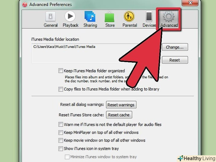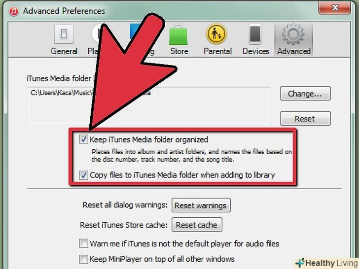 Виберете опції "Keep iTunes Music Folder Organized»і "копіювати файли в iTunes".поставте галочку на кожному пункті.