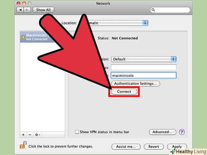 Ініціюйте вихідне VPN з'єднання.- Натисніть на логотип Windows в правому нижньому кутку вікна VPN, а потім на кнопку "Підключитися «під розділом»Ім'я призначення". Тепер потрібно завершити настройку VPN на інших комп'ютерах.