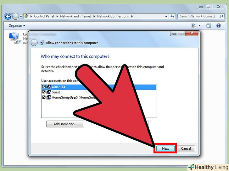 Вкажіть ім'я комп'ютера, якому хочете відкрити доступ до приватної мережі.- Натисніть на "Файл" у меню, що з'явилося (натисніть ALT + F, якщо меню "Файл" не видно), а потім виберіть «нове вхідне підключення...". Після цього на екрані з'явиться майстер налаштування нового підключення, в якому вас попросять вибрати користувачів, яким ви хочете відкрити доступ до VPN.