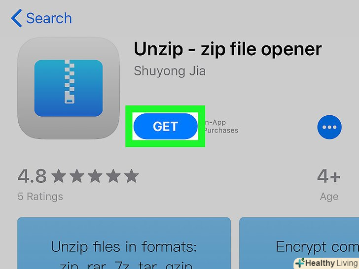 Скачайте додаток Unzip.за допомогою цього безкоштовного додатку можна відкрити і переглянути вміст ZIP-файлу:- Відкрийте App Store.