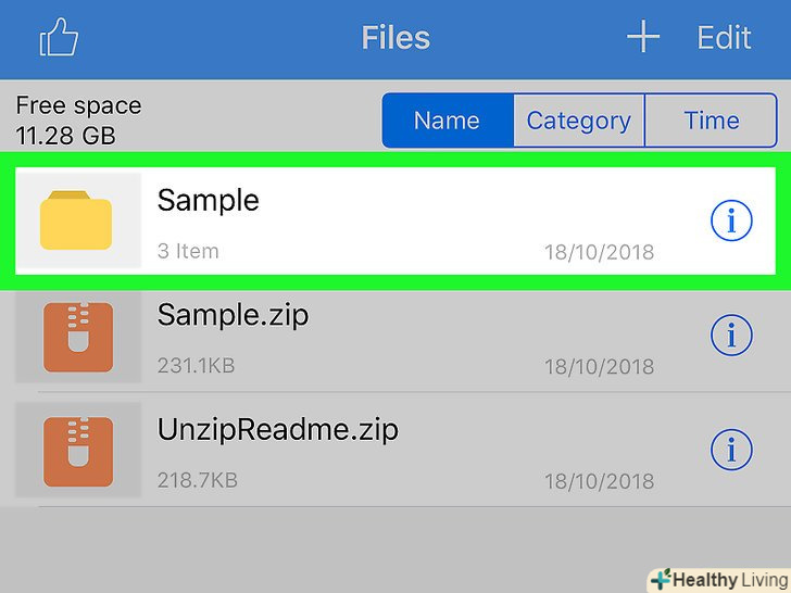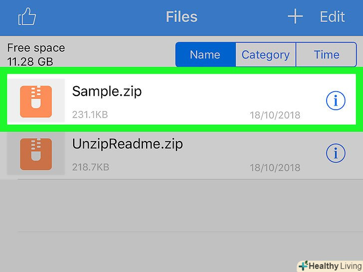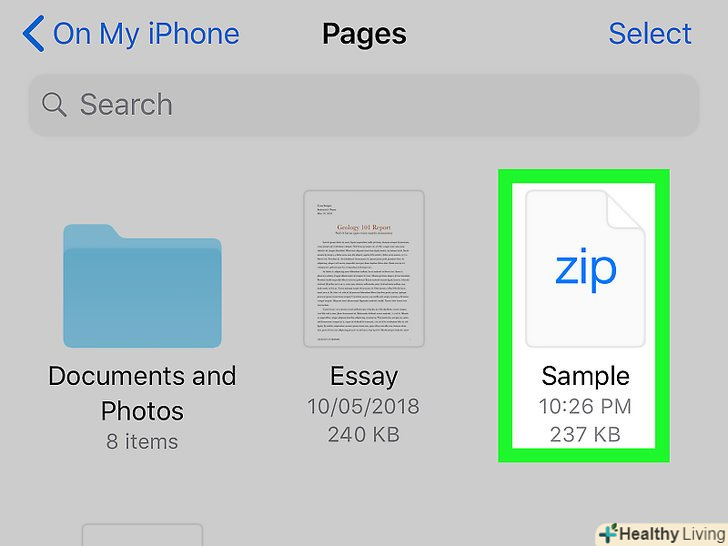 Торкніться назви свого ZIP-файлу.він відобразиться посередині вікна Unzip. Вміст архіву буде вилучено в папку з тим же ім'ям, що у ZIP-файлу.- На жаль, в Unzip не можна переглядати файли архіву (для цього їх потрібно витягти).