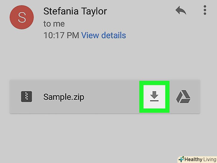 - Якщо ZIP-файл знаходиться в Gmail натисніть значок «Завантажити»поруч з ім'ям архіву в електронному листі.