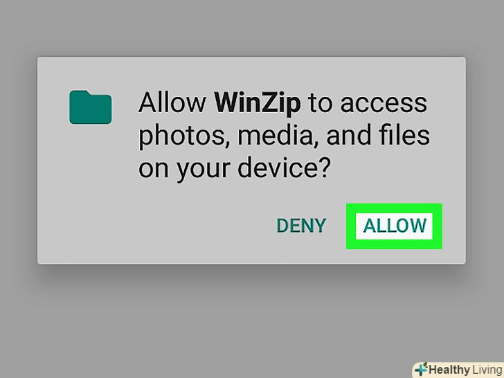 НатиснітьПрийняти, коли з'явиться запит.так WinZip отримає доступ до файлів вашого пристрою.