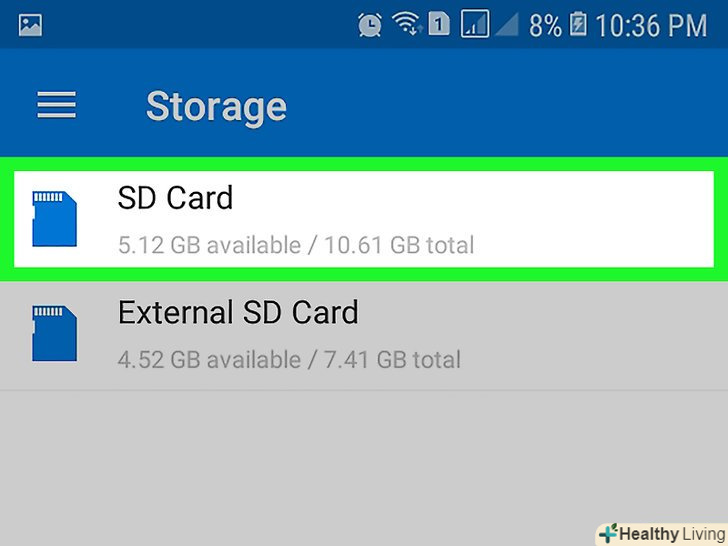 Виберіть сховище.залежно від місця розташування ZIP-файлу натисніть "внутрішня пам'ять»або "SD-карта".
